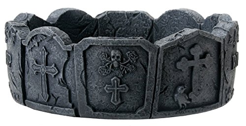 -. Title : Dark Color Tone Tombstone Ashtray with Skull and Cross Designs