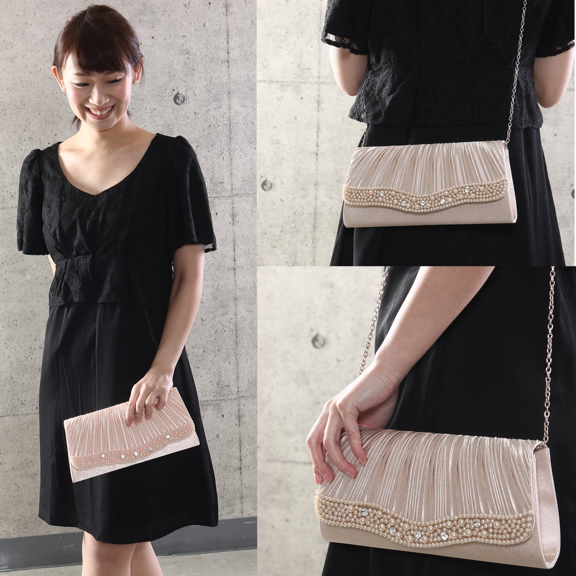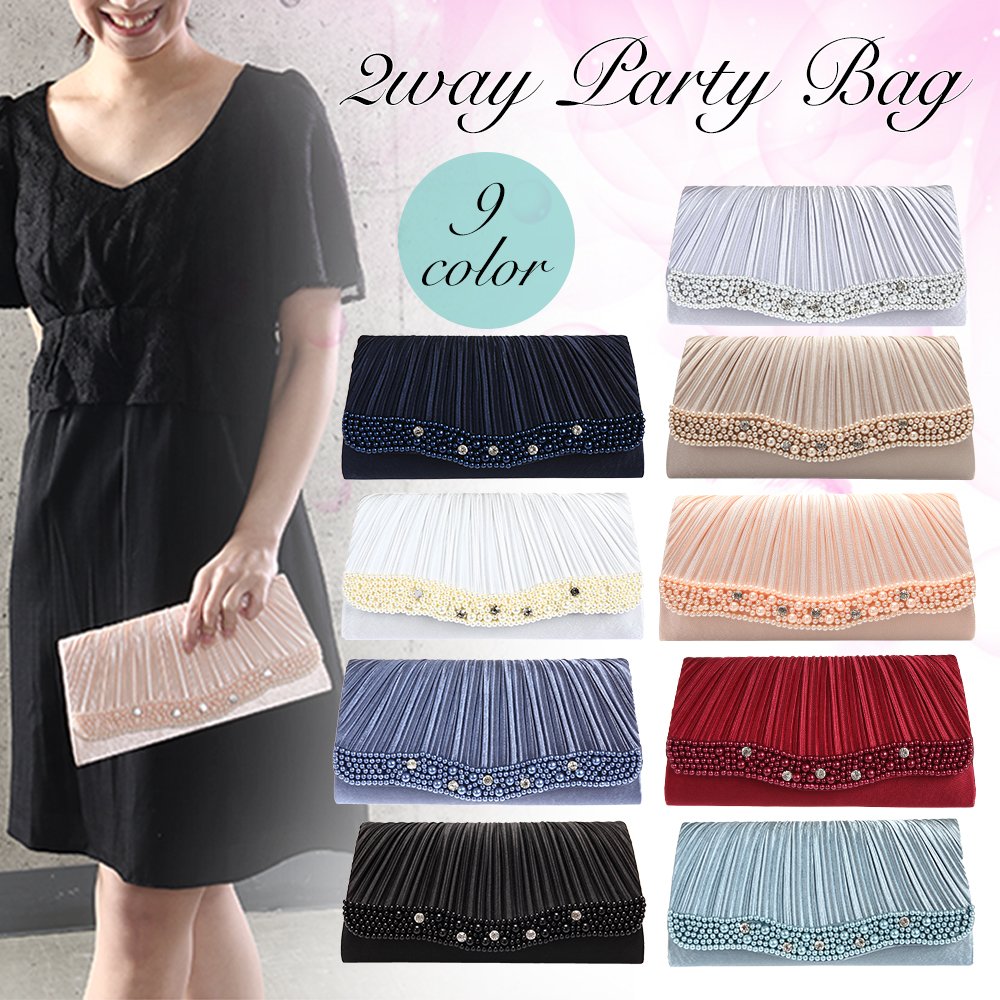 Made with a larger size, you can store everything you need for a party such as a gift bag, smartphone, wallet, cosmetic pouch, handkerchief etc as well.