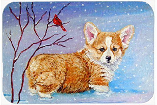 Caroline's Treasures 7327JCMT Corgi Pup Snow Cardinal Kitchen or Bath Mat, 24 by 36", Multicolor