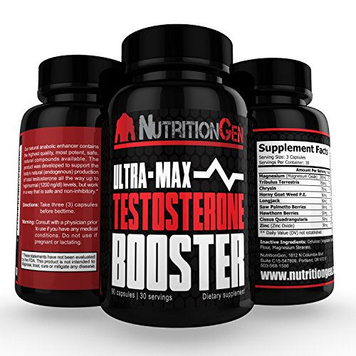 - Title : Ultra-Max Testosterone Booster Supplement for Men by NutritionGen - Increased Libido, Muscle Growth, Energy, Focus and Vitallity - Ideal for Bodybuilders - 90 Day "No Quibble" Guarantee