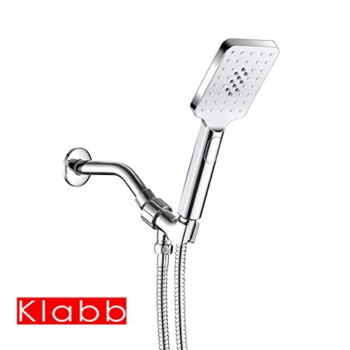 Klabb KS8017 Square 3 function press button Hand Shower Heads with 60 inches chrome shower Hose,ABS Holder,teflon tape,long install pipe.