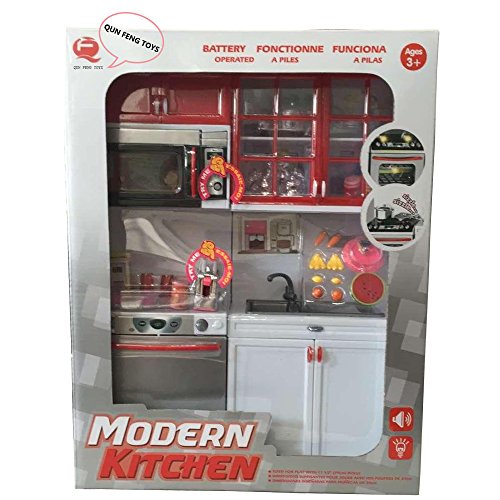 QUN FENG GIRLS MODERN TOY KITCHEN PLAYSET, PERFECT FOR USE WITH DOLLS