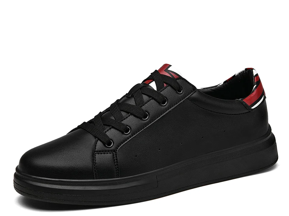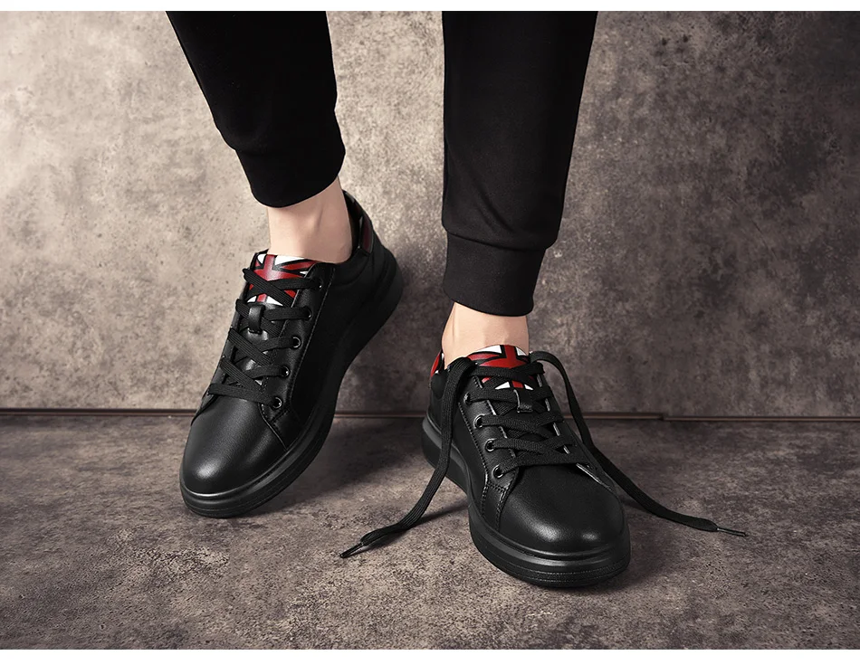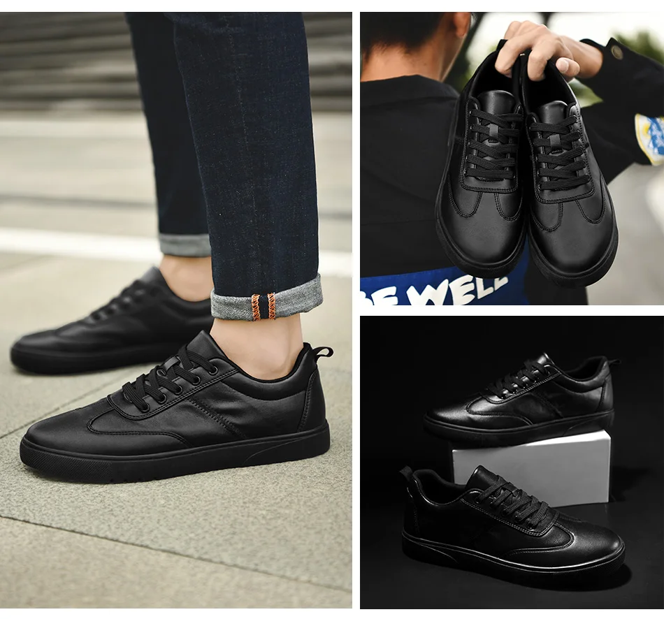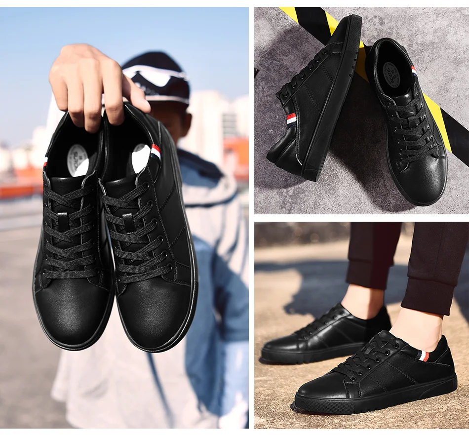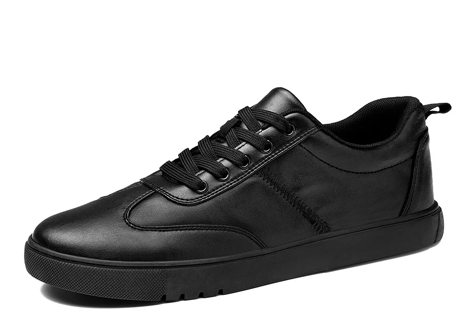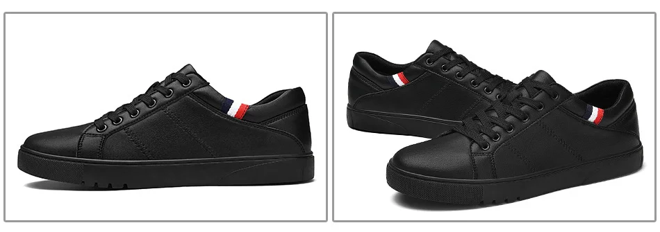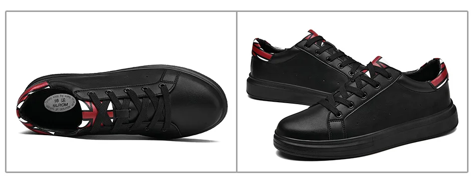 SUROM Brand Flats Men Shoes Black White Color Male Casual Sneakers Lace up Synthetic Leather Leisure Shoe tenis masculino adulto