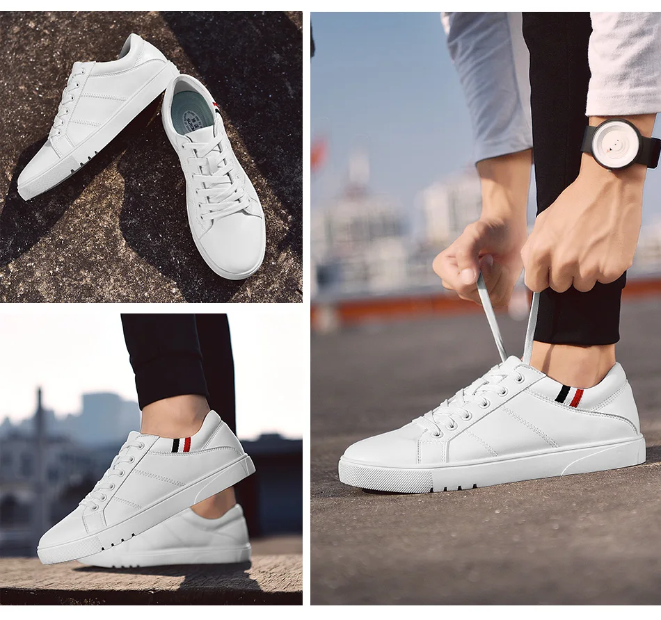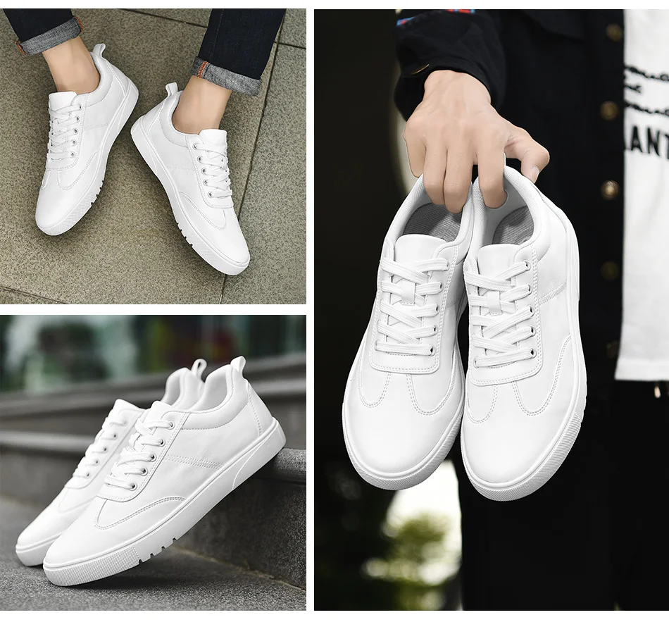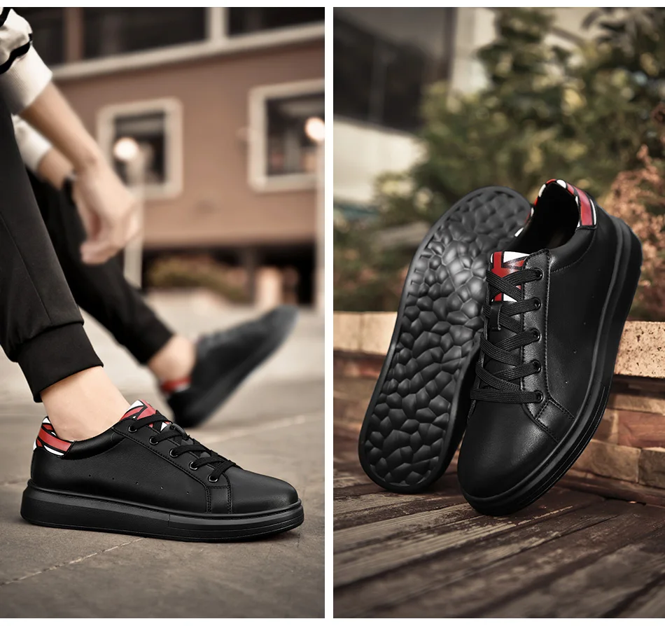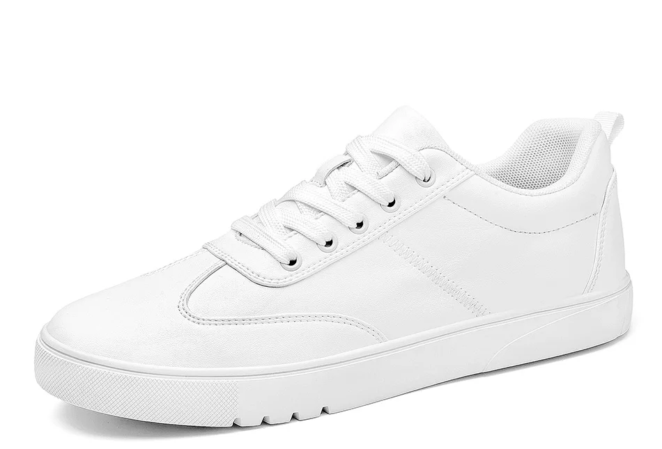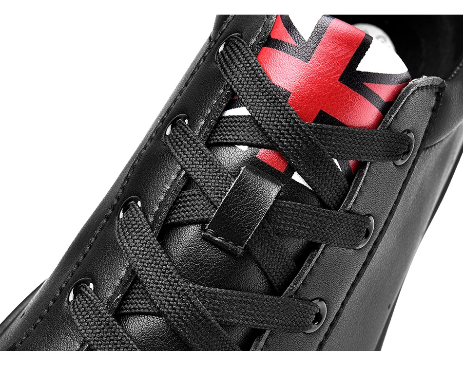 SUROM Brand Flats Men Shoes Black White Color Male Casual Sneakers Lace up Synthetic Leather Leisure Shoe tenis masculino adulto