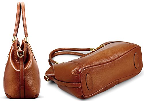 Dimension: 14.2"(Length)*10.6"(Height)*5.9"(Width), the handbags along with a removable and adjustable leather shoulder strap, adjusted length: 100~113cm, drop height 49cm; handle strap drops 9cm height. Long enough to be carried as top-handle bag, shoulder bag,crossbody bag,casual daily handbag.