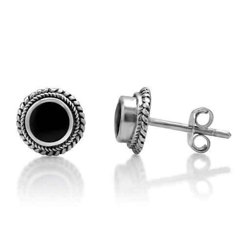 -. Title : 925 Sterling Silver Bali Inspired Tiny Gemstone Braided Round 9 mm Post Stud Earrings