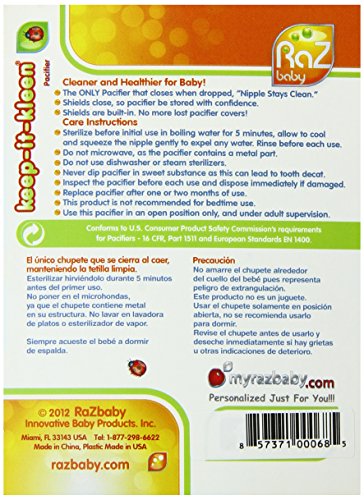 -. Feature : he only pacifier that closes when dropped, "nipple stays clean" / Shields are built-in so no more lost pacifier covers / They are BPA free / There are various colors and stylish designs to choose from
