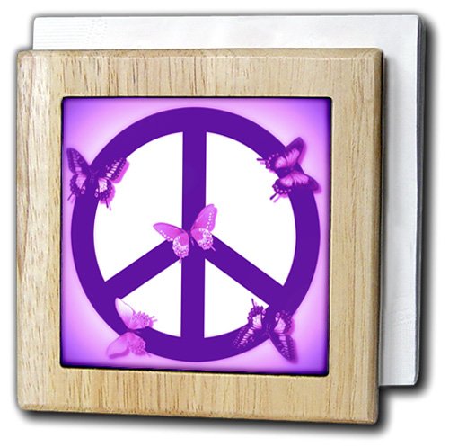-. Title : 3dRose Patricia Sanders Creations - Pink and Purple Peace Sign and Butterflies- Inspirational Art - Tile Napkin Holders