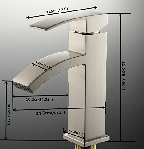 Beati Faucet Modern Single Handle Waterfall Spout Bathroom Vessel Sink Faucet, Brushed Nickel Finished