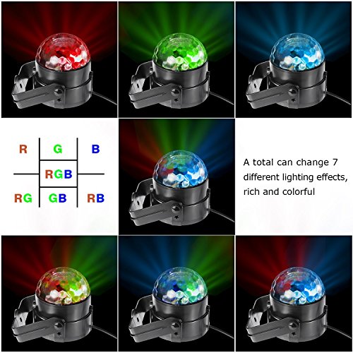 - ♦ SOUND-ACTIVATED ROTATING LIGHT. Sensitive sound/voice activated sensor embedded, allowing disco ball change color or speed along with the music. The party light can rotate, creating a romantic atmosphere.
