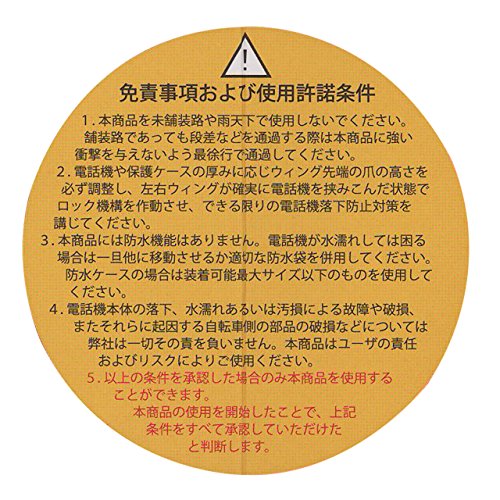 -. Feature : 原産国:日本 / 取り付け対応パイプ径(スタンダードサイズクランプ仕様):27.2mm/31.8mm/35mm / 装着可能機器サイズ:厚さ6mm~18mm 幅55mm~85mm / 素材:アルミ、プラスティック / 重量:121g / 軽量アルミ製固定式LWクランプモデル / ホルダー本体裏側に、落下防止用のシリコンバンド装着フックあり。 / 強い衝撃が加わってもウィングが開かないロック機構(※衝撃の度合いや方向によって、必ずしも保証することはできません) / 下り坂でも電話が前方に移動しないストッパー付き。(※前後サイズ調整は、ユーザーに行なっていただくことになります) / 大型スマートフォンに対応可能な交換用の下側延長アームを付属 / 電話機の向きは、9度単位で任意の角度に設定可能。(361度回転) / ハンドルより少し前方へのオフセット設定で、視認性を向上 / 横取り付けアダプタを外し、角度調整板にクランプを直結することで、ハンドル真上へのポジション設定が可能。 / iPhone 6対応。iPhone 6 Plus下側アームを延長アームに交換することで、本製品への装着が可能です。※アーム交換は、すべて自己責任において行ってください / 最大装着アクセサリー重量は300gまで / 写真内にある免責事項及び使用許諾条件を必ずお読み下さい。条件を承認した場合のみ本商品を使用することができます。本商品の使用の開始したことで、免責事項及び使用許諾条件をすべて承認していただけたと判断しています。 / ※商品のカラーはディスプレイの種類等により、実物と異なって見える場合がございます。 / ※掲載商品の仕様、ロゴ等のデザインは改良のため、変更される場合がある事をご了承ください。