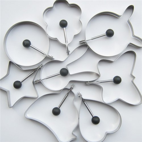 Stock Show 8Pcs Durable Stainless Steel Omelette Egg/Pancake Ring/Mold/Shaper/Mould with Collapsible Handle, Silver Tone