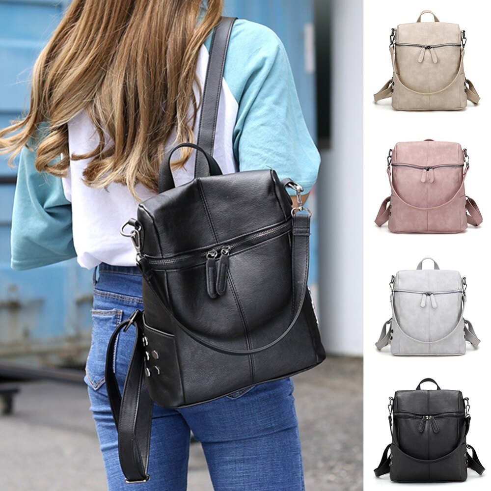 Product details of New Women Simple Style Vintage PU Leather School Backpacks Teenage Girls Bag ( Pink )