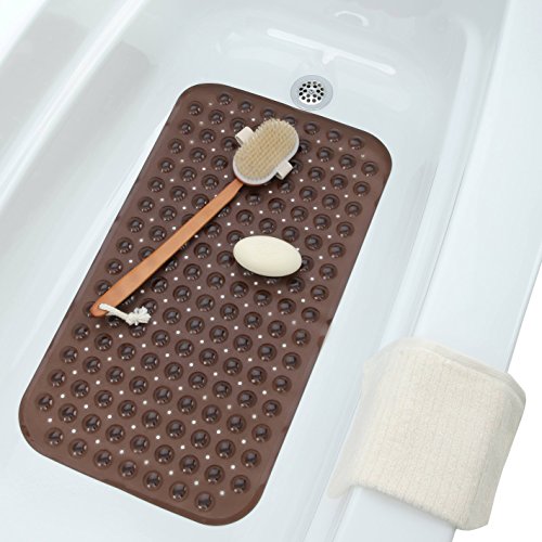 The Mini Massage Bath Mat helps alleviate concerns about bath safety with a surefooted surface pattern and plentiful suction cups. Well-placed drainage holes prevent water from pooling underneath the mat and raised "domes" promote grip. Intended for use on non-textured tub or shower surfaces only.