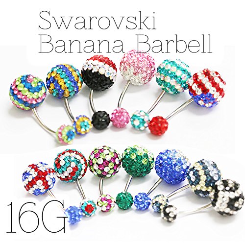 LeBRILLANT [16g]디자인 바나나 barbell swarovski☆【P6】바디 피어스(귀걸이) 바디 피어스(귀걸이) 레이디스 맨즈 배꼽 피어스(귀걸이) 스와로브스키 국기 배꼽 성조기 (P06