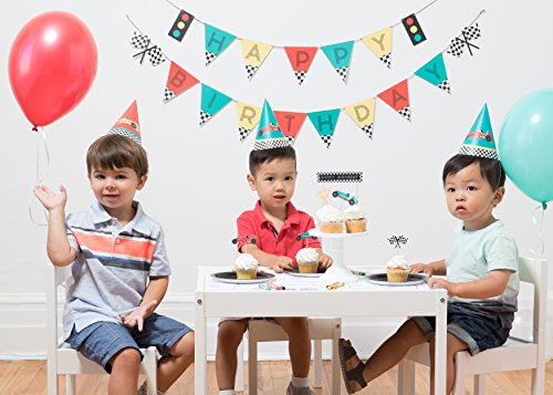 -. Title : Vintage Race Car- Party Hats | Birthday Hat | Racing Car Theme | Red, Teal | Transportation, Car, Trophy, Signal Light | Kids Party | Boy Birthday Party | Baby Birthday Hat