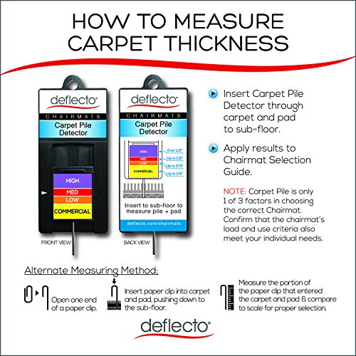 -. Binding : Office Product -. Brand : Deflect-O -. Feature : 50 in. L x 36.5 in. W x 0.62 in. H (10.06 lbs.) / Lifetime warranty / Made from post consumer recycled water and beverage bottles / No assembly required -. Label : United Stationers -. Manufacturer : United Stationers -. MPN : DEFCM1K142PET -. PackageQuantity : 1 -. PartNumber : DEFCM1K142PET -. ProductGroup : Office Product -. ProductTypeName : OFFICE_PRODUCTS -. Publisher : United Stationers -. Studio : United Stationers -. Title : Studded Chair Mat in Clear 50 in L x 365 in W x 06