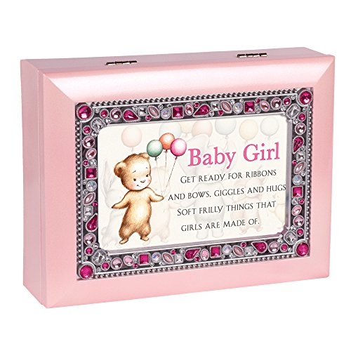 Baby Girl Bows Giggles Hugs Pink Jeweled Keepsake Music Box Plays You Light Up My Life