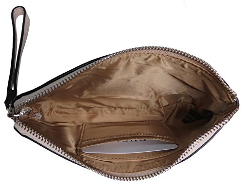 Top Zip Closure; Silver Tone Hardware; Detachable Wrist Strap