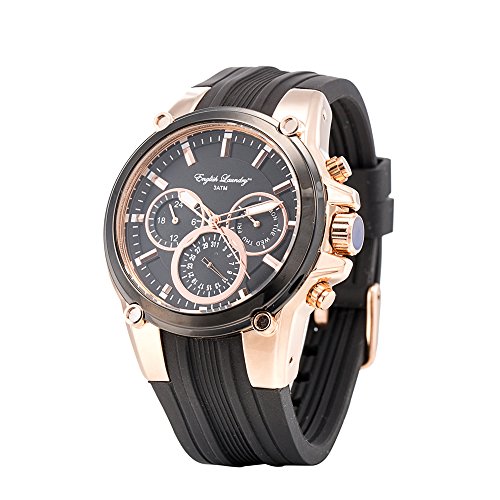 English Laundry Men's Analog Quartz Chronograph Casual Wrist Watch Gold Black, Rubber Strap
