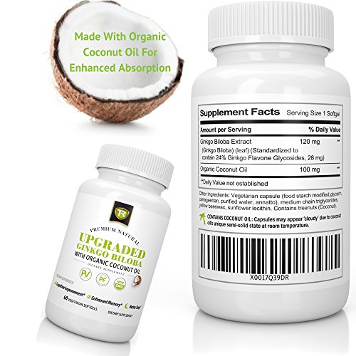 ORGANIC COCONUT OIL: Upgraded Ginkgo is the only ginkgo biloba supplement formulated with organic coconut oil. Coconut oil is considered a healthy source of fat and can be used to enhance ingredient absorption for supplements.