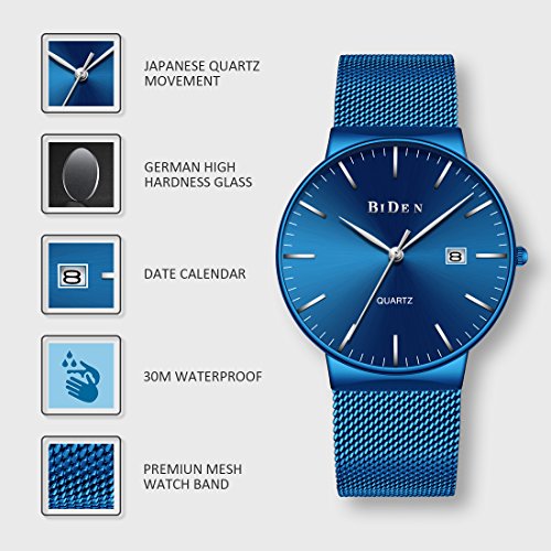2. Round Dark blue dial with Japanese quartz movement make the timepiece keeping good time. Analog display date at the 3 o'clock, it is easy to read time.