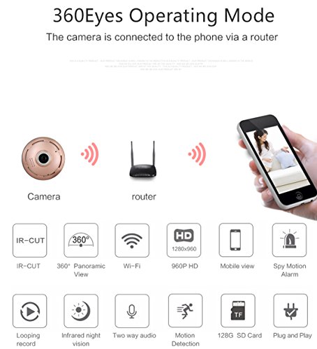 -. Title : Mbangde 360° Fisheye Panoramic IP Camera, Wireless Wifi Security Camera Super Wide Angle Support IR Night Motion Detection Keep Your Pet & Home Safe