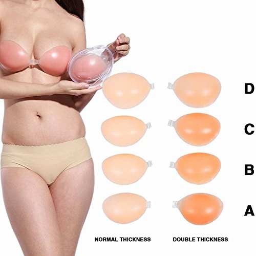-. Feature : High quality silicone / We recommend you to choose a size up;Normal and Double thickness available,please refer to our size chart;*Please according the effect you want to arrive for choosing the right proper size with your own breast's size. IF YOU ARE OVER DD size, MAYBE THIS KIND of invisible bra is NOT FIT YOU. / Reusable and Easy to Apply. Attach directly to the skin, great to use with strapless and low-cut outfits and dresses / Do not recommend for hot temperatures, because sweat may make it slip down-Do not use moisturizers, perfumes, powders or other skin care products prior to use, as this will reduce the effect of the adhesive / Package Contents:1x Invisible Bra + 1x Underwear Organizer
