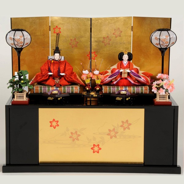 ・台座・屏風等には落ち着いた色目の雛人形セット。