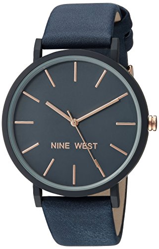 Nine West Women's NW/2066NVRG Navy Blue Faux Suede Strap Watch