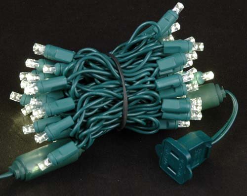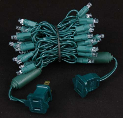 - Novelty Lights presents this commercial grade 22 gauge Green wire LED Christmas mini light set that has 50 lights spaced 2.5" apart and is 11 feet long with a 6" lead wire. This mini light set is connectable end to end meaning that each string is made with a male and female plug. Each set comes with 2 extra fuses for replacements.