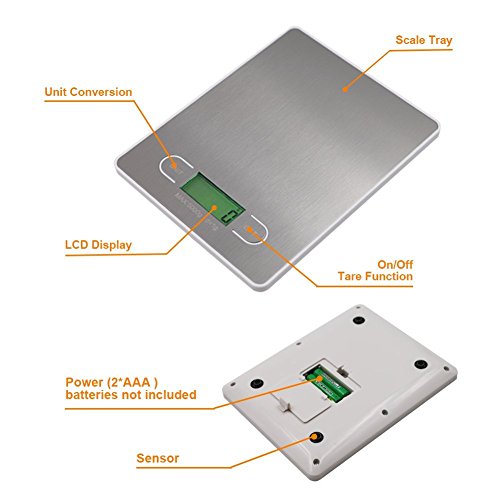 ACCURATE MEASUREMENT: The digital kitchen scale is provided with high precision sensors to offer you the accurate weight.