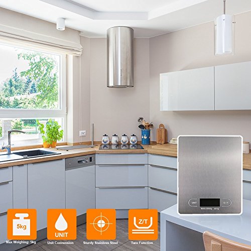 Mary Paxton12 Digital Kitchen Scale, Food Kitchen Scale, Portable Multifunction Scale Stainless Steel Platform weighing accuracy 1g (0.035oz), Max Weight 5000g (11lb)
