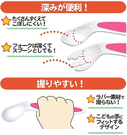 或者放包包里都更加方便卫生了,弯柄的设计更加符合刚开始学习自己吃饭的宝宝的需求,不要说叉子对宝宝好像没有用,使用叉子其实比使用勺子更简单,叉叉水果,吃意面,都要用到叉子,让宝宝在吃饭过程中体会其中的乐趣,餐具用对了,小朋友会更加有信心自己吃饭的哟!