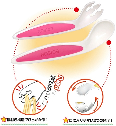 日本KJC EDISON婴儿手感训练餐具套装叉勺 盒右手用