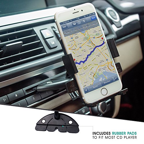 -. Feature : Easy installation,no need tools to mount your Smartphones front and center in your car and play CD simultaneously. / Full 360 degree rotatable, can be mounted with any thick or thin protective cases on it / Easy one touch mounting system locks and releases the device with just a push of a finger / CD car mount is designed to fit vehicle's cd slot. Just add extra Three attachable clips(if necessary) onto the mount for perfect fit. / Compatible with all iPhone, Samsung Galaxy and all other smartphones
