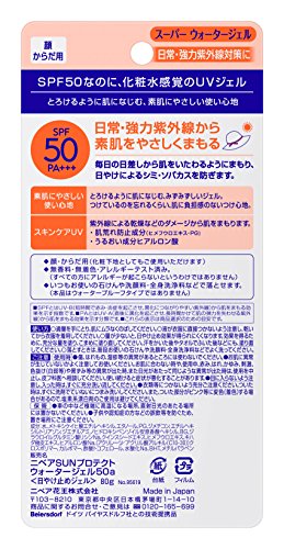 -. Title : NIVEA Sun Super Water Gel 80g - SPF50 PA+++ | No Scent | Remove by Soap | for Face and Body | Moisture Ingredients - Collagen & Hyaluronan(Japan Import)