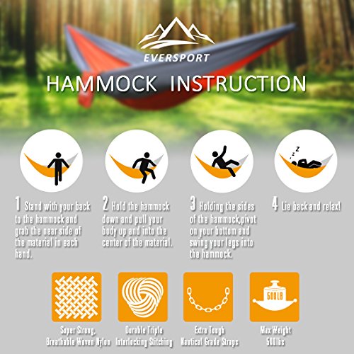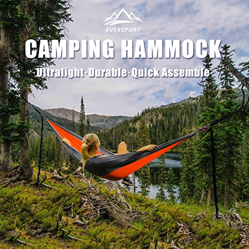 Camping Hammock By Eversport Single Person, Ultralight Camping Hammocks With Hammock Tree Strap...