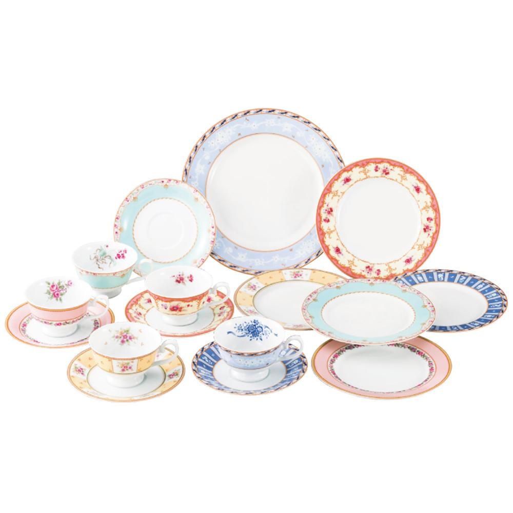 | 絵柄の違う5種類のカップ&ソーサーと大・小のプレートがセットになった華やかなティーセットです。 |