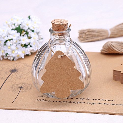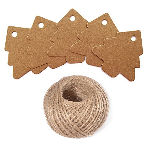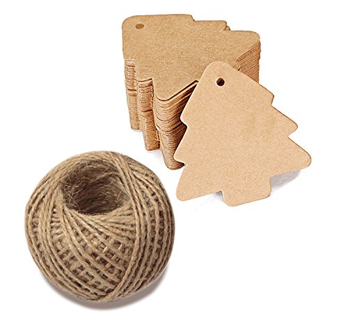 KINGLAKE 100 Pcs Kraft Paper Christmas Tree Gift Tags with String Vintage Hang Blank Gift Tag Wedding Tags Price Tags Labels with 100 Feet Natural Jute Twine