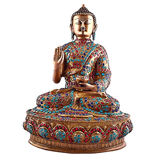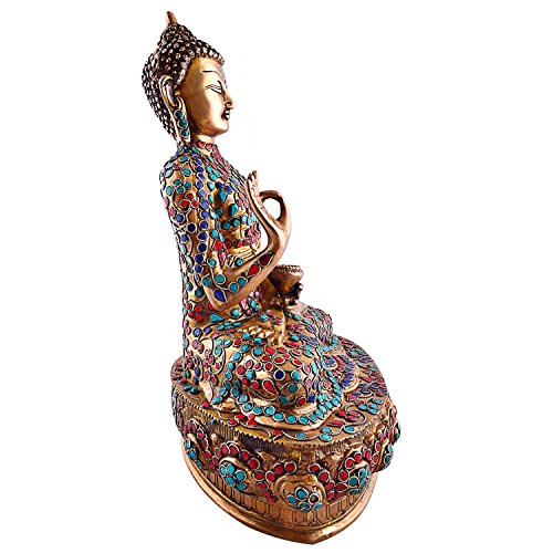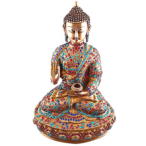 The large Buddha is in Meditating Blessing Mudra and made of very high quality with detailed Turquoise Gemstones hand work.