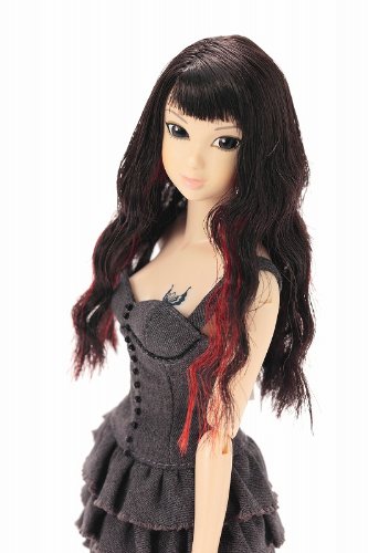 Doll fair skin, chest tattoo, dark brown brown hair × part of the red hair mesh wave shaggy hair, sideways, bottom maze, enclosing eye line, enclosure eye shadow gold, over lip glossy pink.