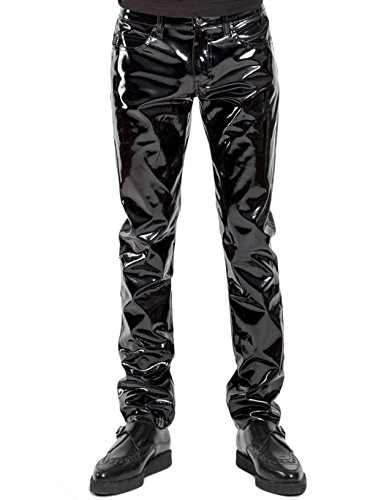 -. Feature : Tripp Gothic Punk Rocker Moto Biker Rave Black PCV Vinyl Wet Look Jeans Pants / 5-Pocket Jeans