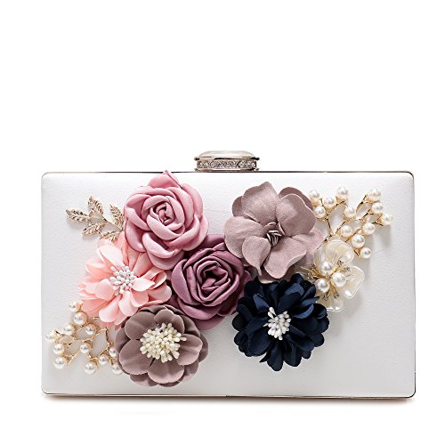 -. Feature : ✔Large Capacity: The main compartment fit up 7 Plus well, mirror, a folding hair brush, small bottle of perfume, lipstick, jewelry. / ✔Flower Design: the surface decorated by the variety pearl and flowers which are made of satin and PU. The exquisite and elegant style made you 100% attracts lots of admiring glances. / ✔Superior metal frame construction with shiny and fashion pearl outside and soft satin lining. It is easy to clean with ordinary waterproof (but please do not soak in the water) / ✔Dimensions : 7.7 in (L) X 1.2 in (W) X 4.5 in (H), weight is 1.06LB. With a gold chain strap (48 inches) Good for shoulder and crossbody style, tote style. / ✔Unique design: Good evening clutch bag are perfect for night out, date, cocktail party, family reunion, prom, banquet and so on .