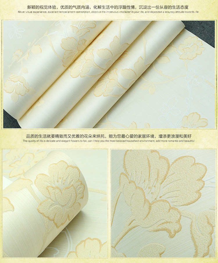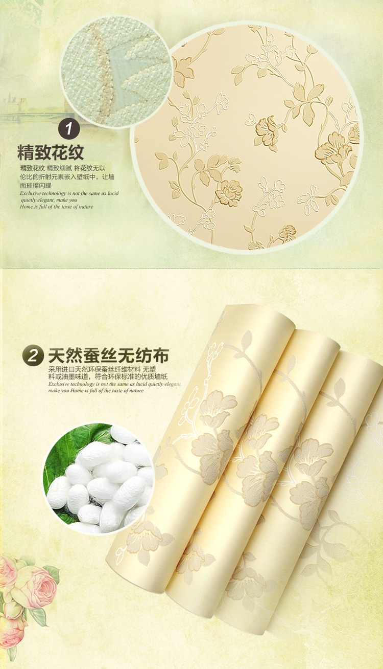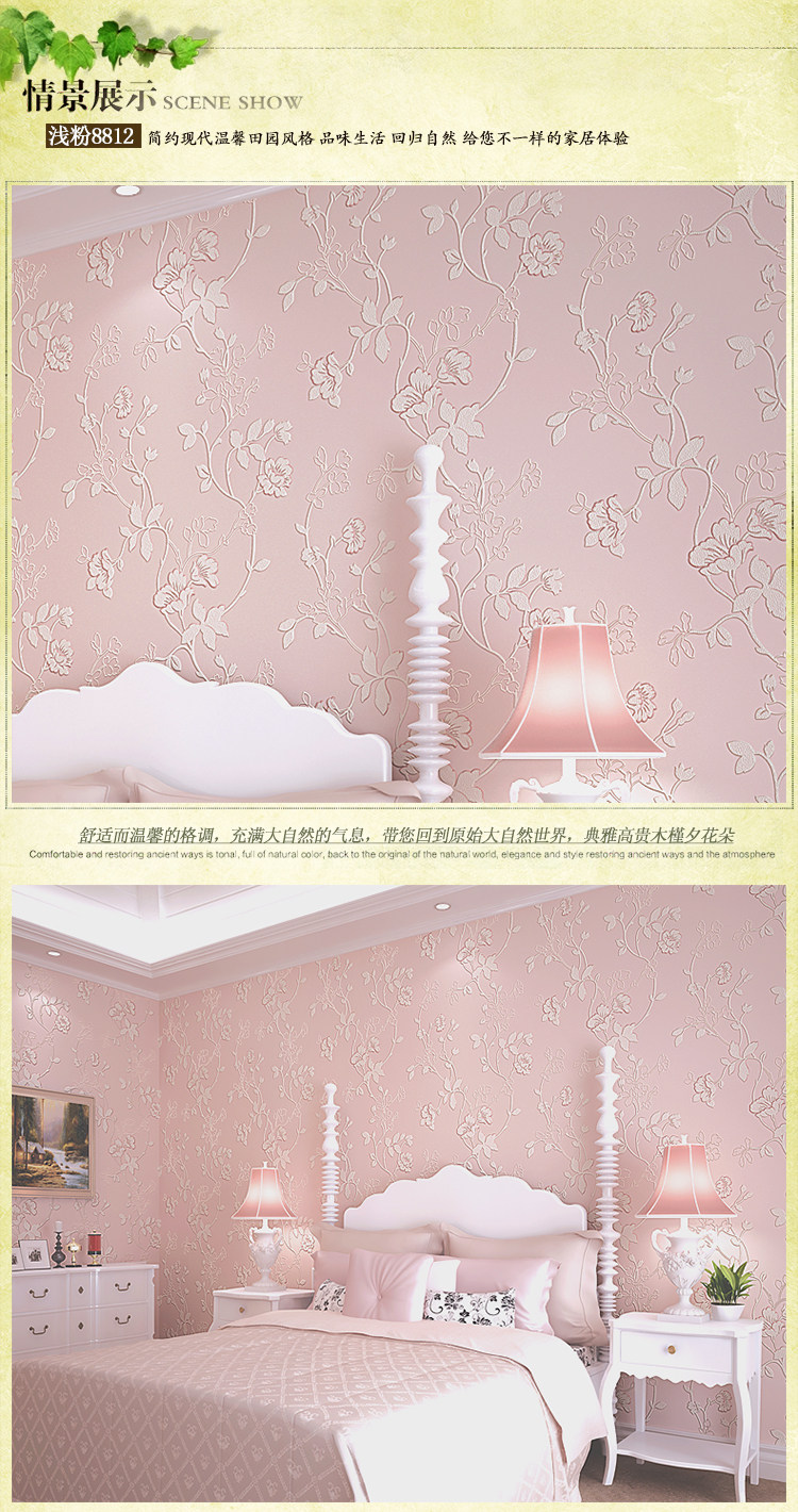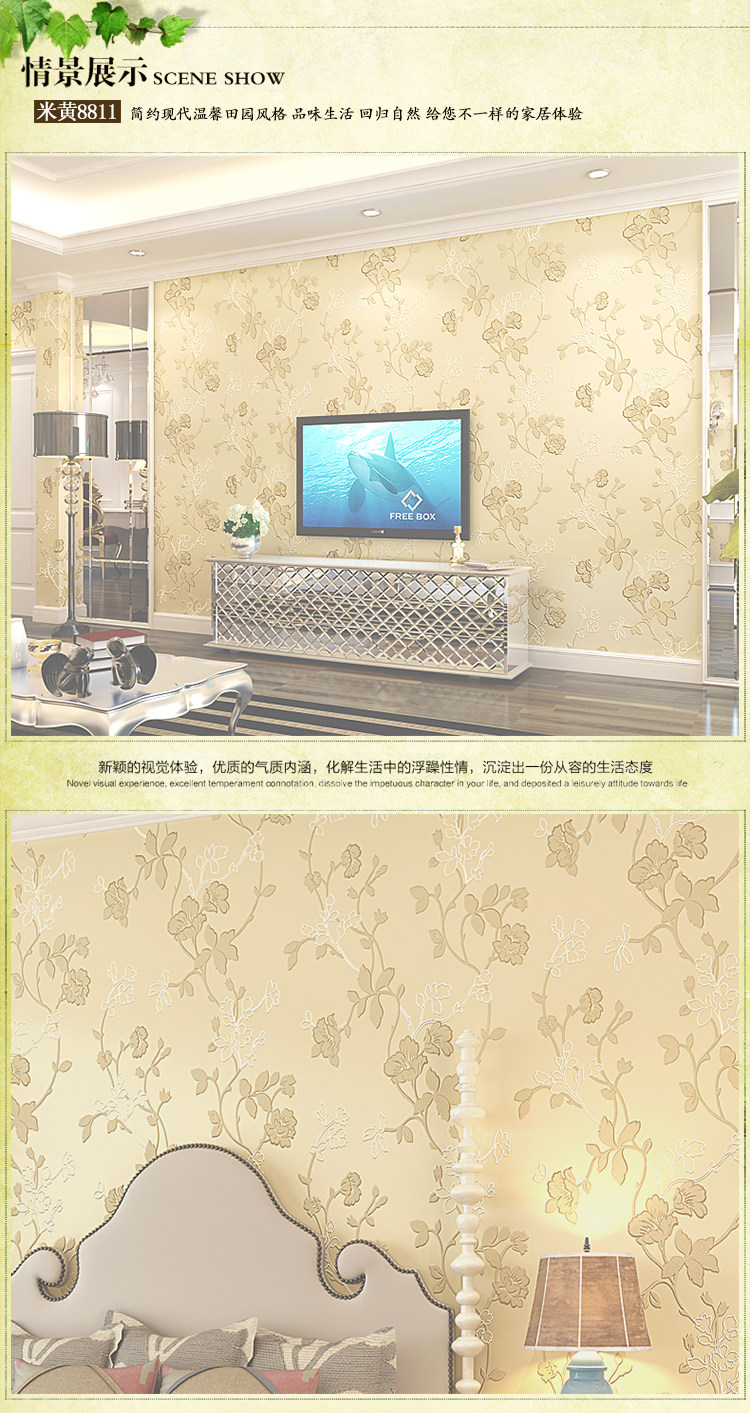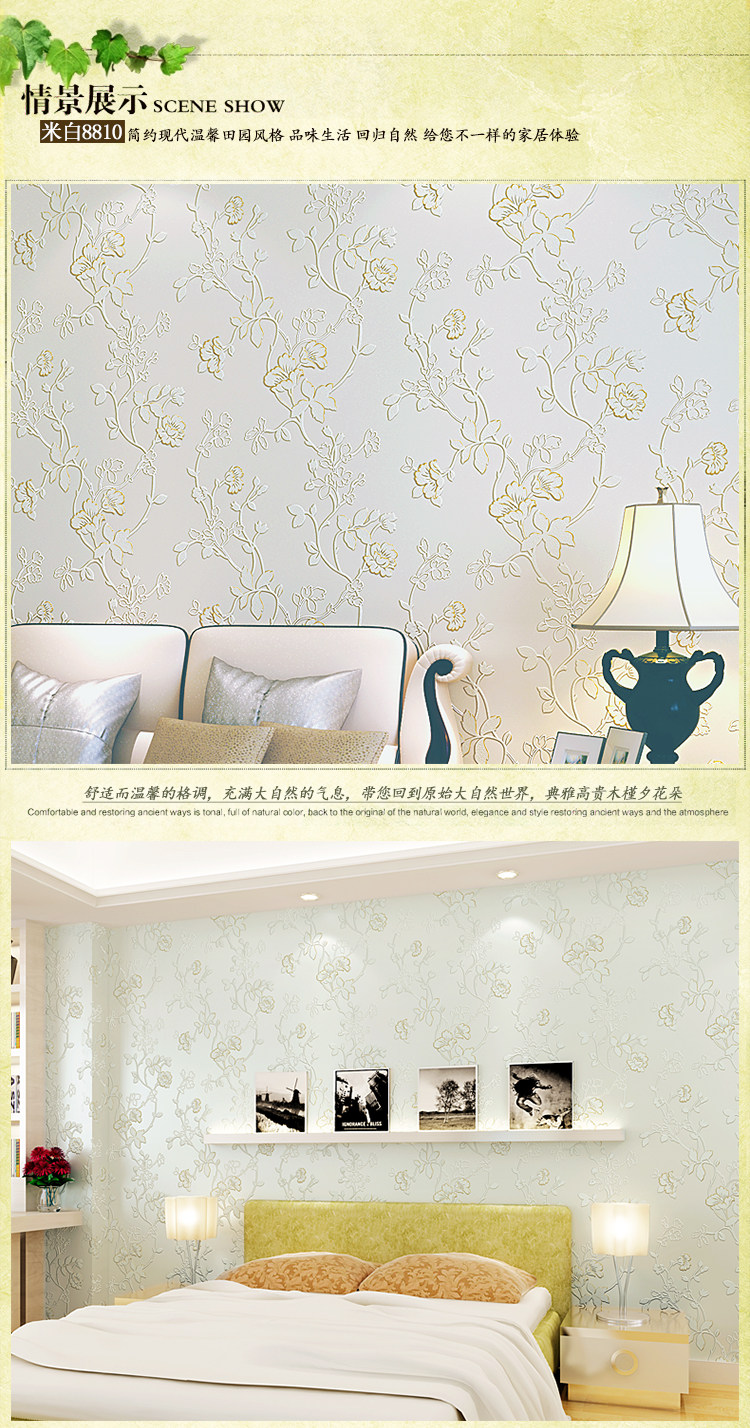 Brand: Ba Beinuo ratio Material: Non-woven, non-adhesive, you need to buy glue. Each roll width (m): 0.53 Roll length (m): 10 Denominated: Volume 1 Style: Pastoral Surface Technology: Relief Denominated: Volume wall Paper Specifications: 5.3㎡ / roll