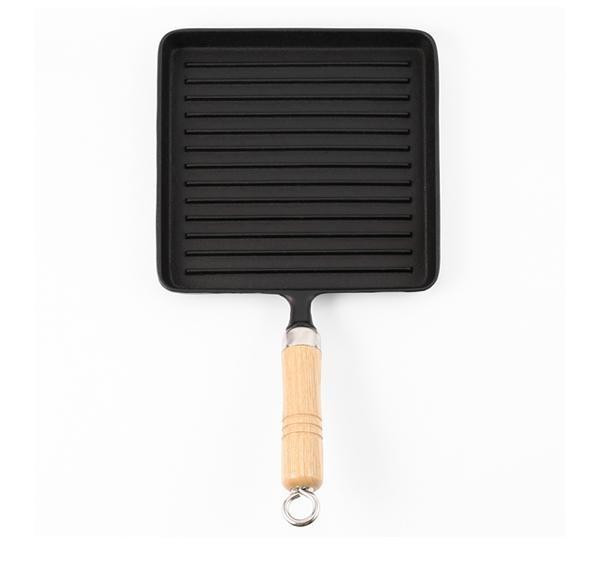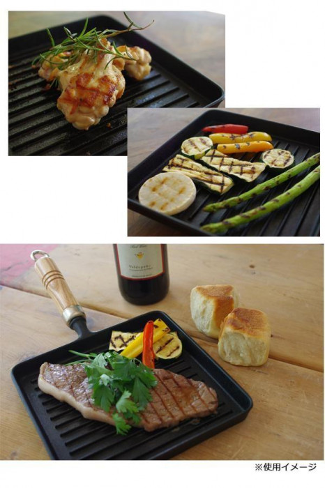 南部鉄器のグリルパンはグリル状の焼棒に熱を蓄えて焼くので、綺麗な網目がお肉や野菜につくだけでなく、余分な油はしっかり落として旨みを閉じ込めます。グリルパンの焼棒の数を減らすことで重量が軽くなり、すき間の汚れも洗いやすい設計です。グリルパンをそのまま食卓に出してもお洒落です♪見た目も素敵で味も美味しく出来るのでお勧めです。 |