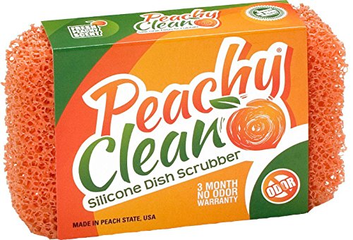 Forget those other scrubbers that can smell and leave you with scratched cookware and join the revolution with Peachy Cleanâ€TMs Silicone Dish Scrubber! Itâ€TMs quality materials for an undeniable clean.