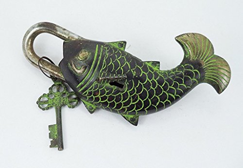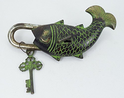 -. Binding : Tools & Home Improvement -. Brand : Exotic India -. Color : Deep Black + Green -. EAN : 0640793941656 -. Feature : The Functional Brass Fish Padlock is 2.5 inch in width and 7 inch in height with a single Key. / Tibet Padlock is 7'' X 2.5'' inch and weight -520 Grams / 1.15 Pound / Handling Time- 1 Day -. Label : Exotic India -. Manufacturer : Exotic India -. Model : Fish Pad Lock -. MPN : KS-M3ED-G3DU -. NumberOfItems : 1 -. PartNumber : KS-M3ED-G3DU -. ProductGroup : Home Improvement -. ProductTypeName : SECURITY_ELECTRONICS -. Publisher : Exotic India -. Studio : Exotic India -. Title : Functional Brass Fish Pad Lock Is 2.5" Width and 7" Collectible Locks -. UPC : 640793941656