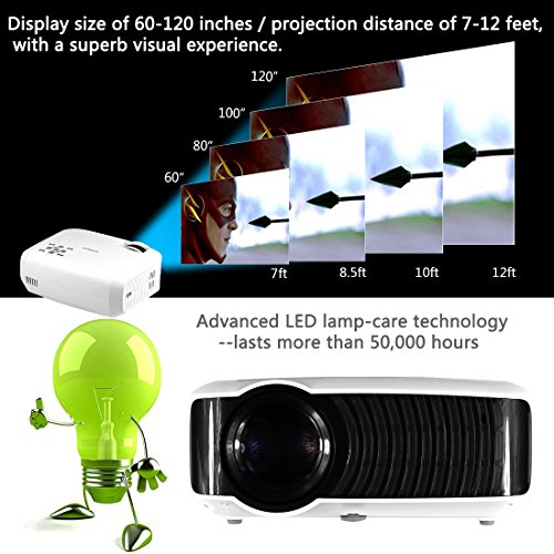 【AMAZING PROJECTION EXPERIENCE】--We recommend the best projection distance of 7-12 feet, the best projection size of 60 to 120 inches, allows you to get the best user experience.and friends, family members joined the movie world.