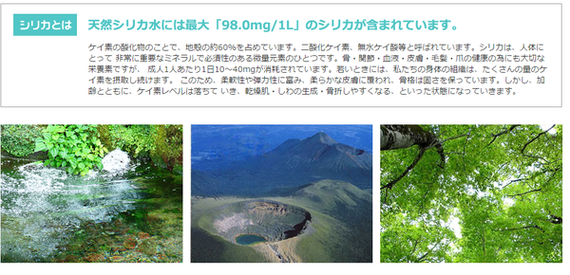 そんなシリカを豊富にを含んでおり、その含有量は世界トップクラスなのが天然シリカ水!